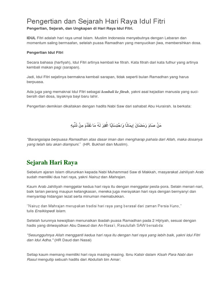 Pengertian Dan Sejarah Hari Raya Idul Fitri Docx