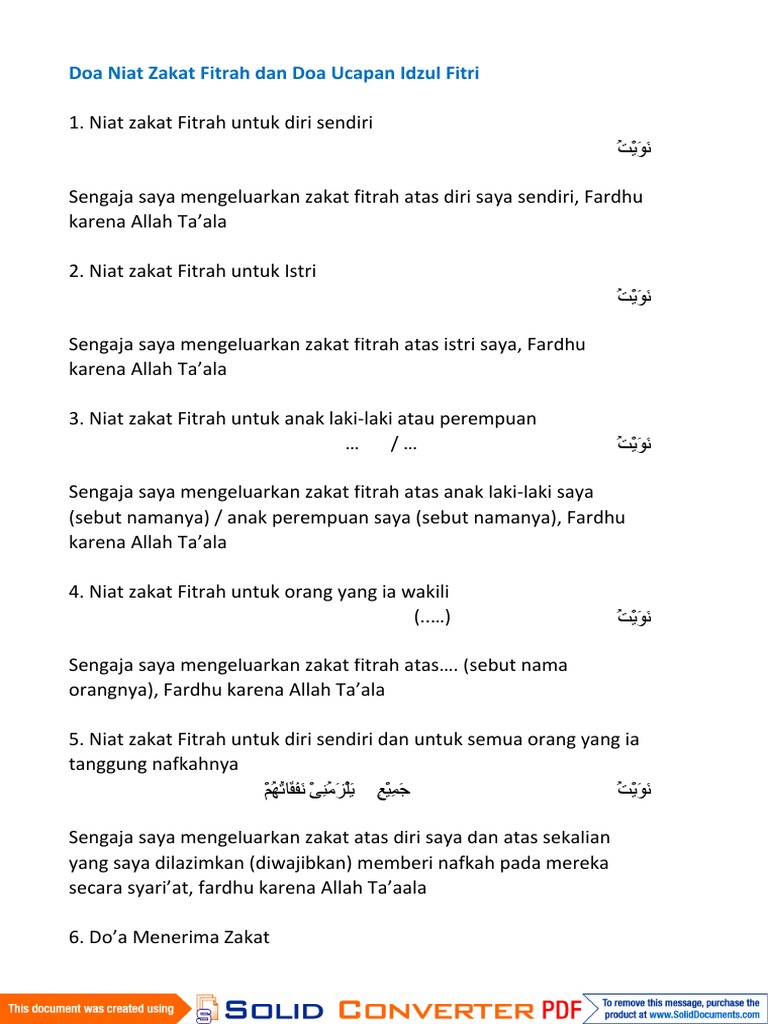 Doc Bacaan Niat Zakat Fitrah Idul Fitri Untuk Dirisendiri Agil