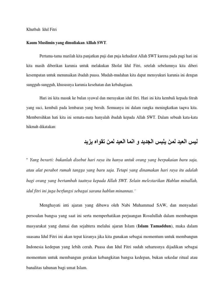 Teks Untuk Khutbah Muraqi Idul Fitri Free Download Borrow